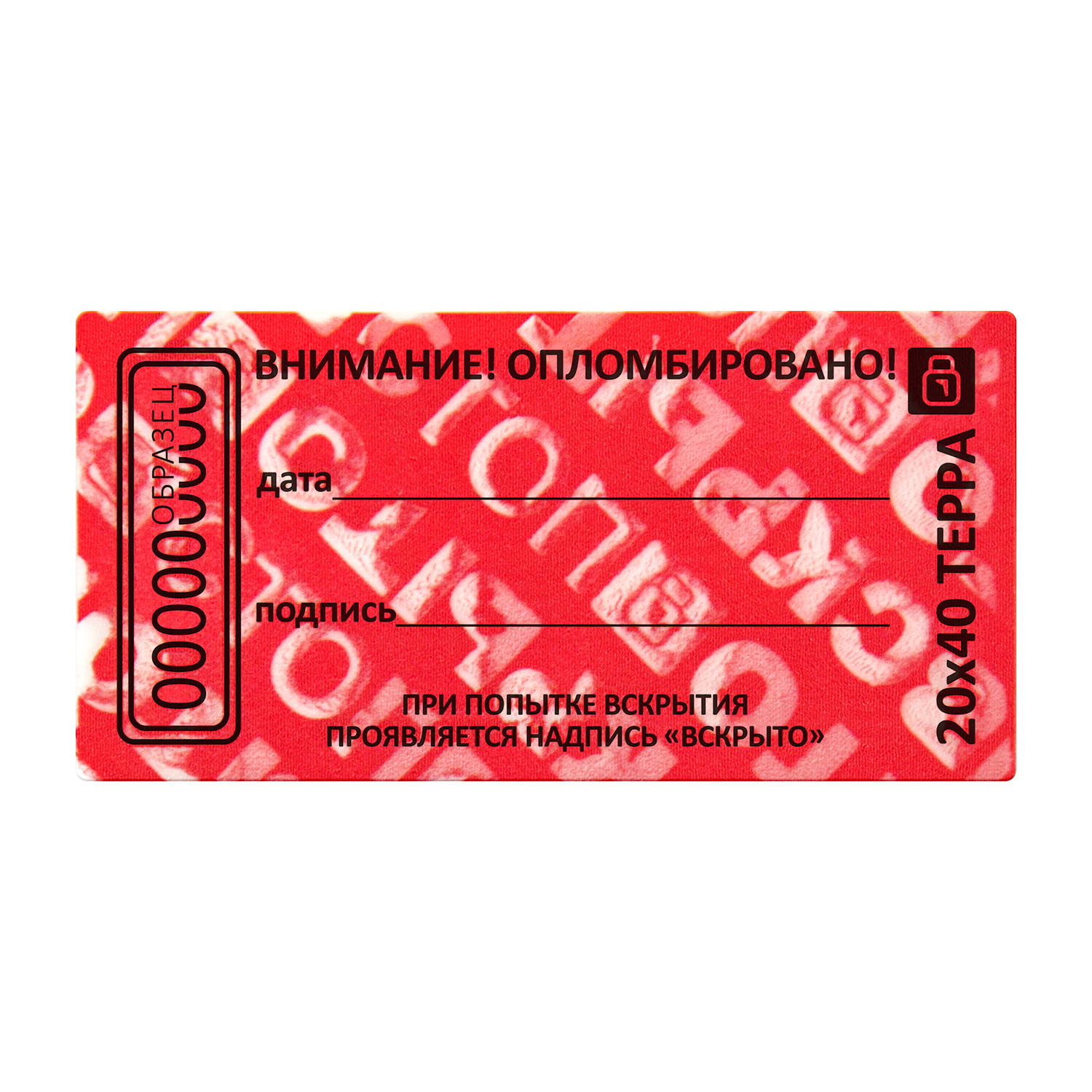 Самоклеящаяся номерная пломбировочная наклейка на специальной подложке. Изготовлена из полиэстера с высокоадгезивным клеевым слоем. При попытке отклеивания от на поверхности проявляются надписи "ВСКРЫТО" и значок производителя, не исчезающие при повторном наклеивании.  Наклейка содержит поля "дата" и "подпись". Идеально подходит для пломбирования любых чистых поверхностей.