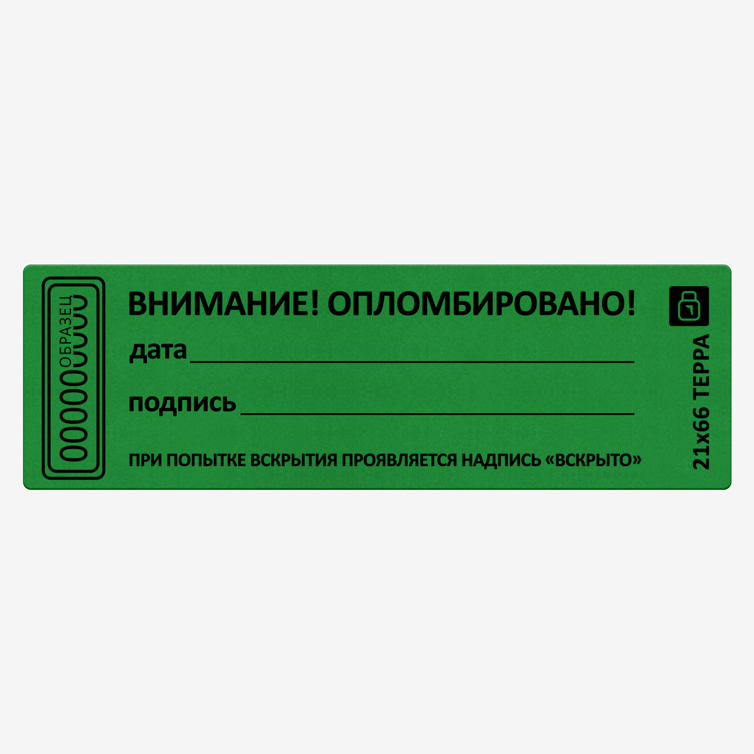 Самоклеящаяся номерная пломбировочная наклейка на специальной подложке. Изготовлена из полиэстера с высокоадгезивным клеевым слоем. При попытке отклеивания от на поверхности проявляются надписи "ВСКРЫТО" и значок производителя, не исчезающие при повторном наклеивании.  Наклейка содержит поля "дата" и "подпись". Идеально подходит для пломбирования любых чистых поверхностей.