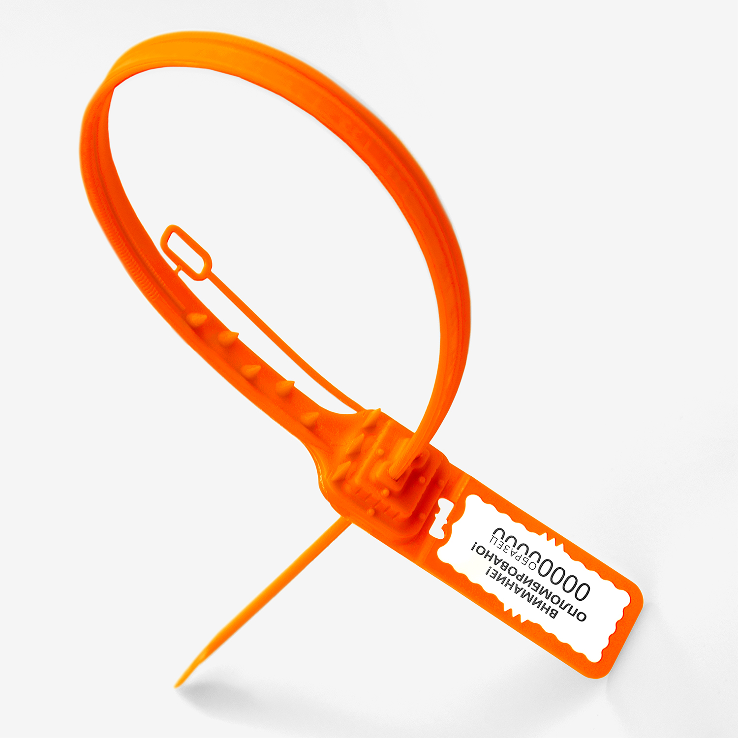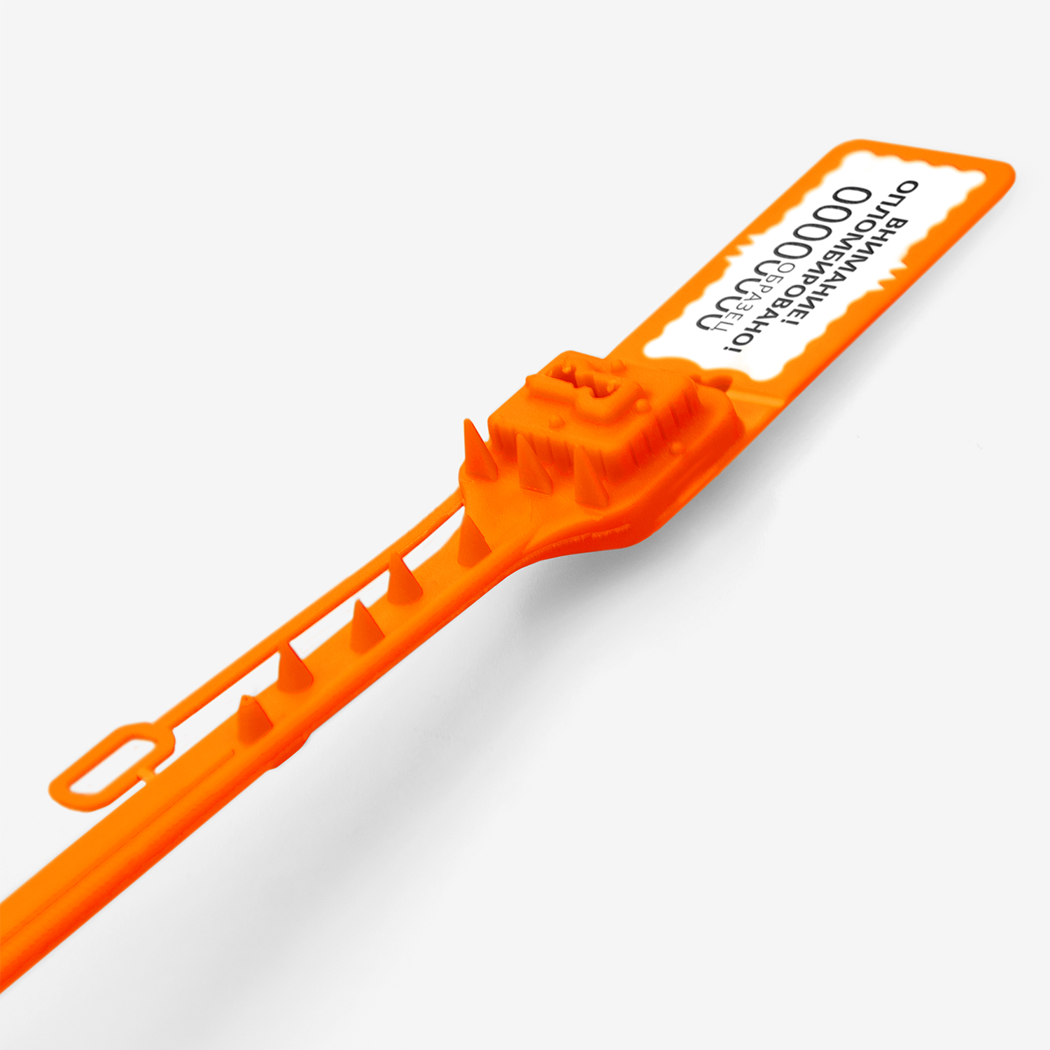 Мешковая пломба с рабочей длиной 374 мм.  Изготовлена по технологии двуцветного литья, что позволяет наносить защищённую лазерную маркировку на пломбы любого цвета.  Замок-вставка изготовлен из нержавеющей стали.  Пломба имеет 8 прочных, острых, длинных шипов, которые обеспечивают прочное крепление пломбы на любых типах мешков.  Гибкий элемент пломбы имеет усиленную конструкцию и острый, прочный наконечник для прокалывания мешков.  Специальный гибкий элемент с линейкой позволяет надежно защитить пломбу от попытки вскрытия даже без затягивания.  Пломба имеет многоуровневую систему защиту от вскрытия и подделки.